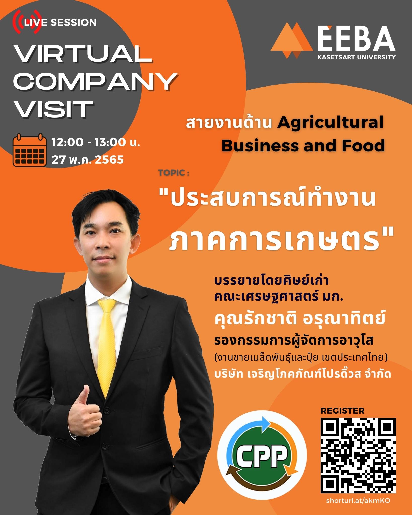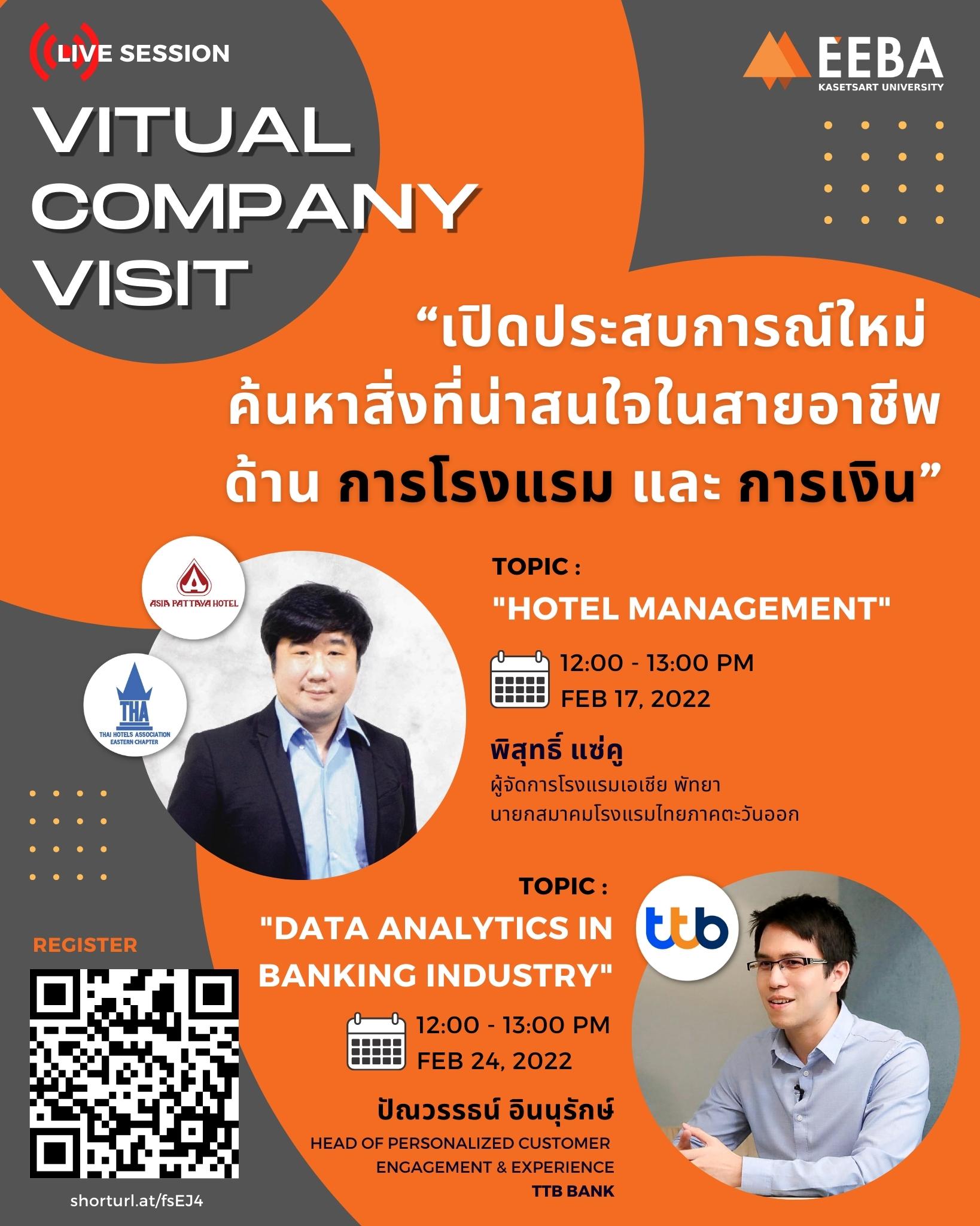 ขอเชิญนิสิตคณะเศรษฐศาสตร์เข้าร่วมกิจกรรม “Virtual Company Visit” การศึกษาดูงานในรูปแบบเสมือนจริง กิจกรรมจัดโดยโครงการ EEBA ซึ่งเป็นกิจกรรมที่นิสิตจะได้รับฟังประสบการณ์ตรงจากผู้ที่มีความเชี่ยวชาญในสายอาชีพ แต่ละด้าน โดยวิทยากรจะมาให้ข้อมูลพื้นฐานสำหรับการประกอบอาชีพหรือการทำธุรกิจ ความรู้ที่จำเป็...