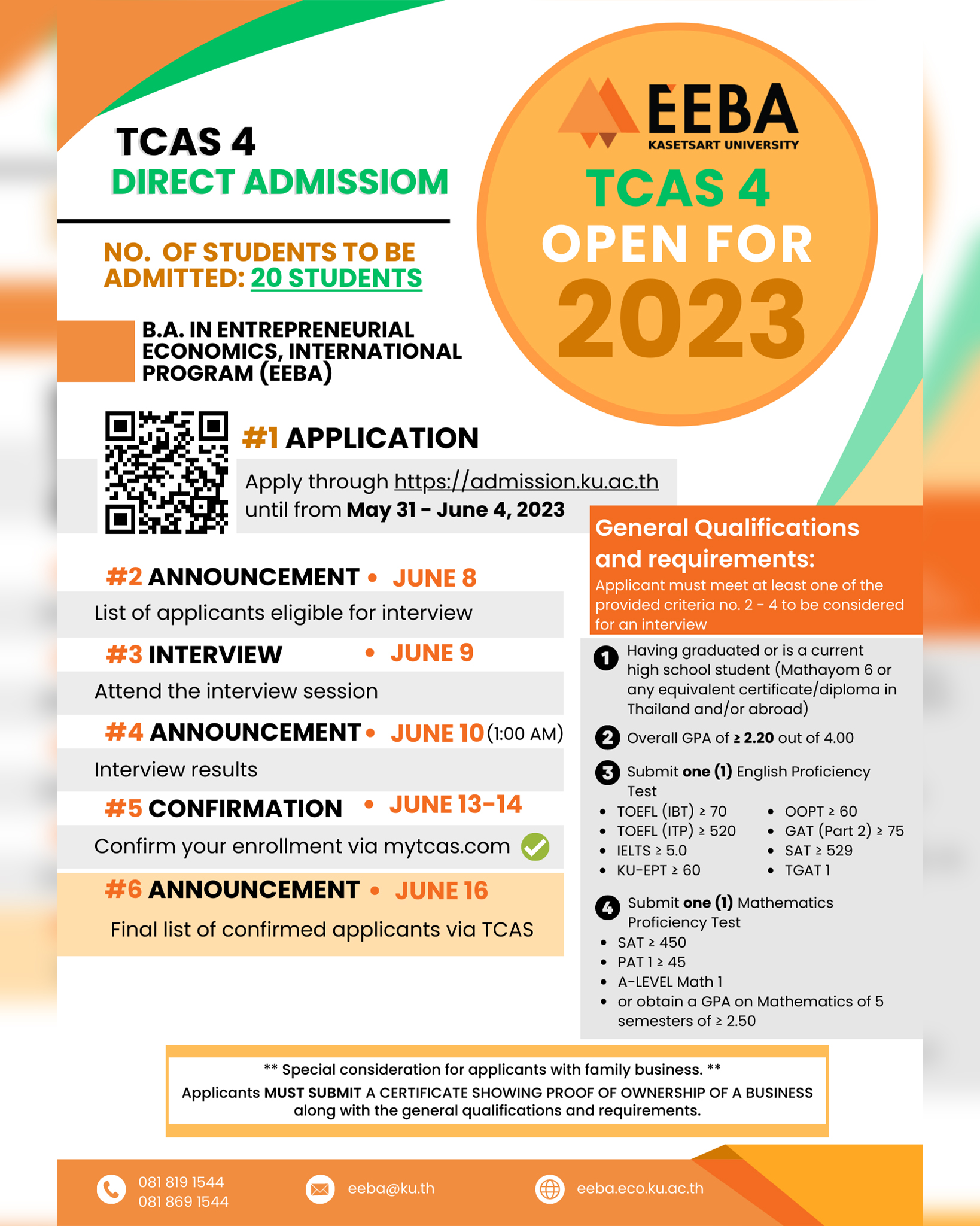 1. Registration time is at 8.30 a.m. in front of the room EC5205, 2nd floor, Economics Laboratory Building (Building 5), Faculty of Economics, Kasetsart University.