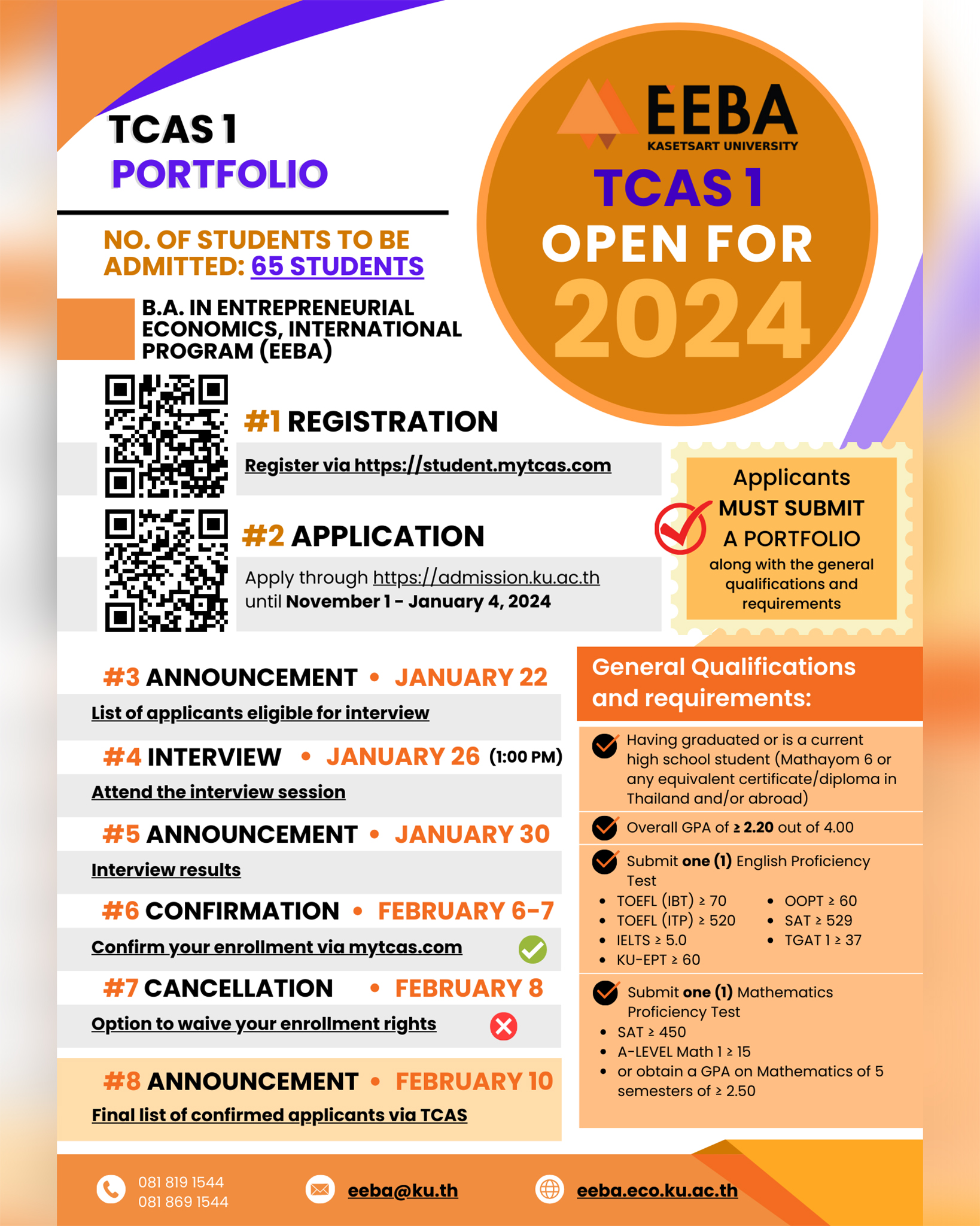 1. Registration time is 12.30 p.m. in room EC5616, 6th floor, Economics Laboratory Building (Building 5), Faculty of Economics, Kasetsart University.