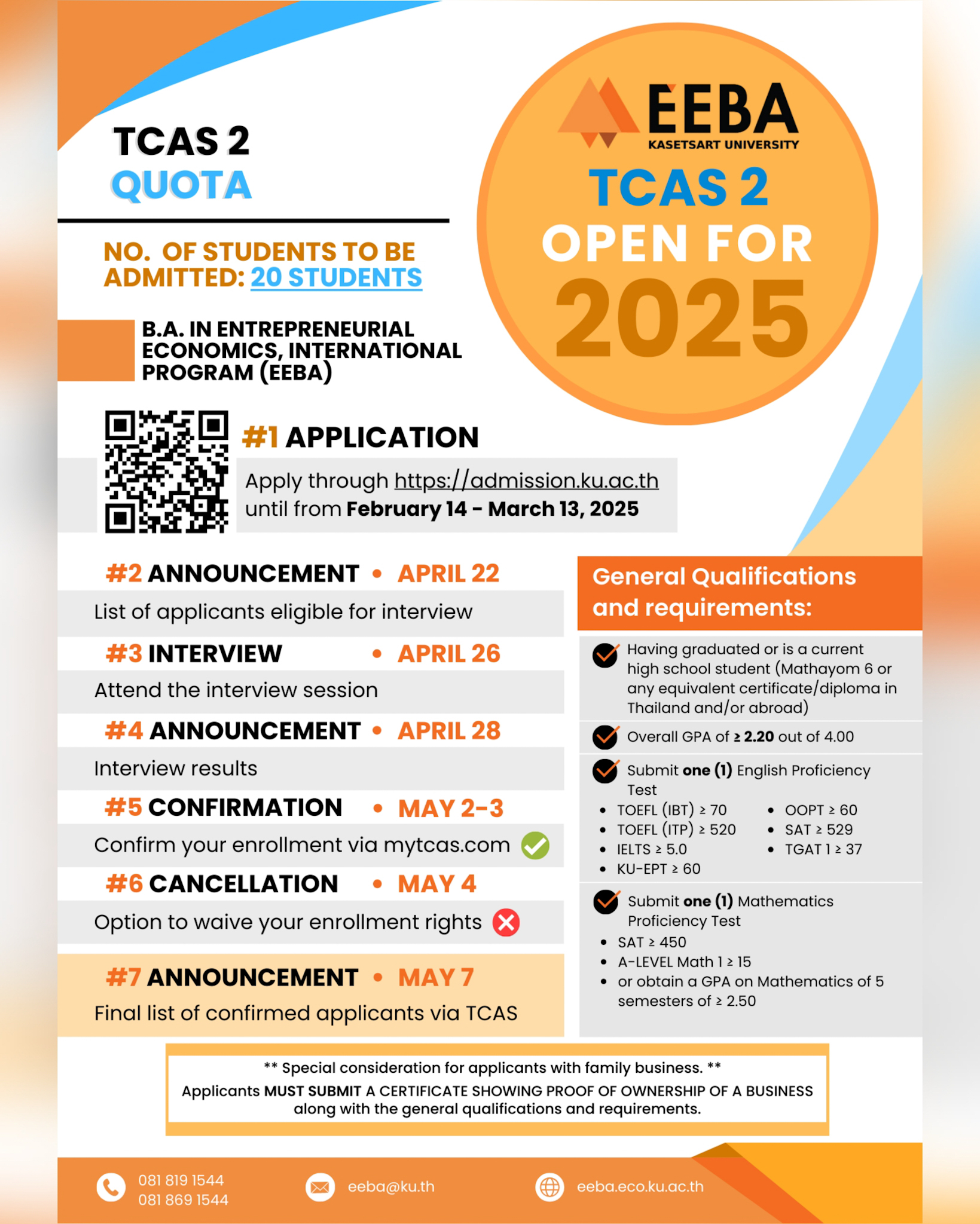1. Registration time is 08.30 a.m. in room EC5606, 6th floor, Economics Laboratory Building (Building 5), Faculty of Economics, Kasetsart University.