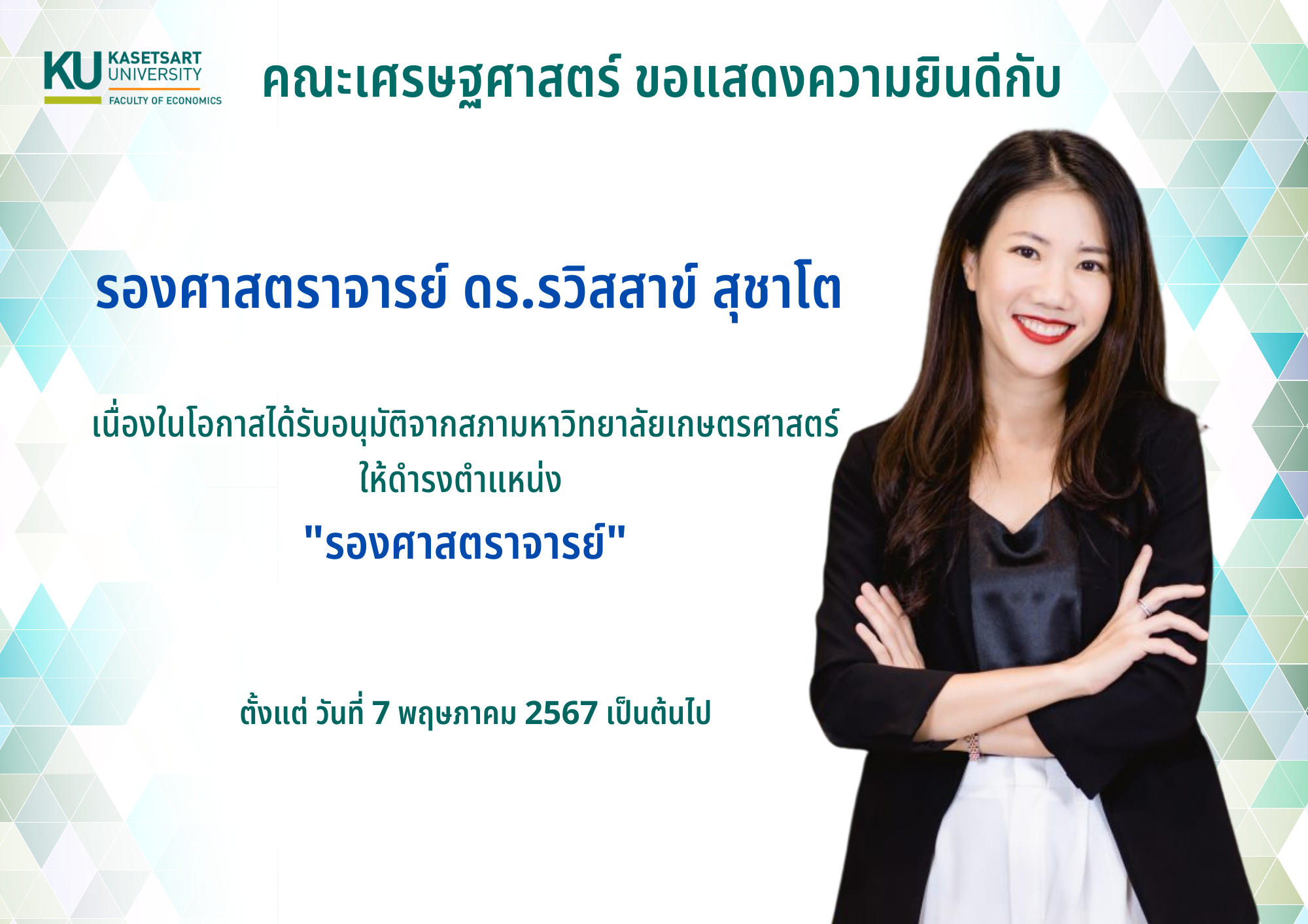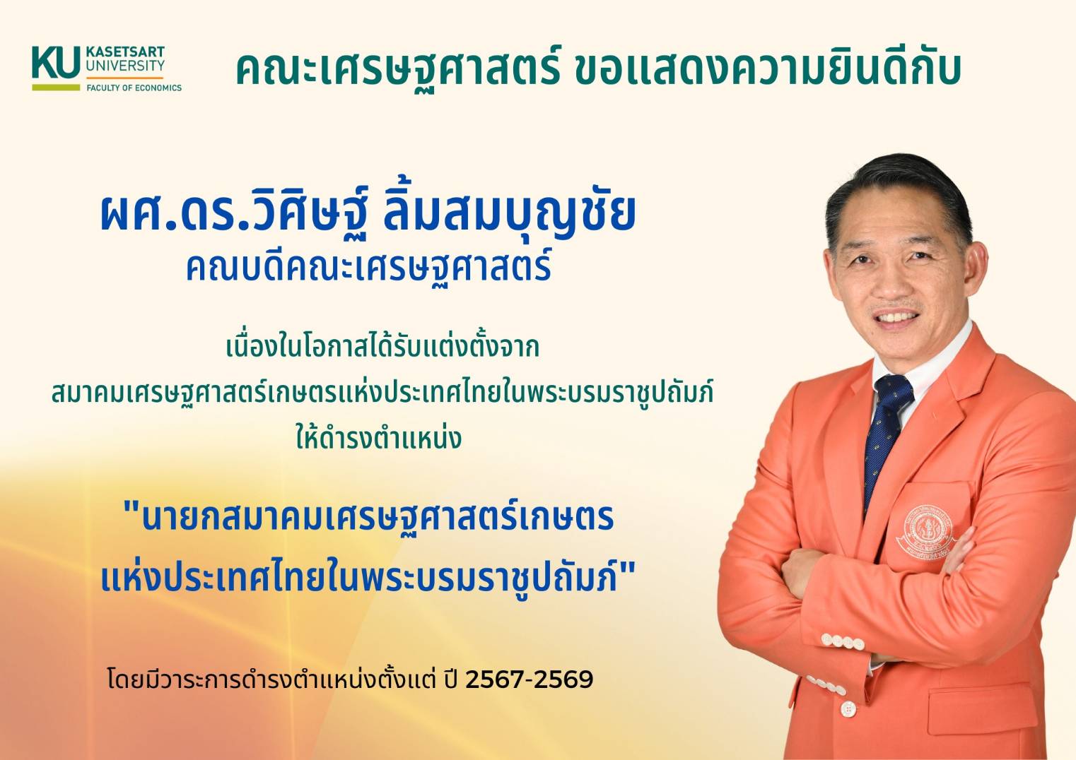 คณะเศรษฐศาสตร์ขอแสดงความยินดีกับ รศ.ดร.วิษณุ อรรถวานิช