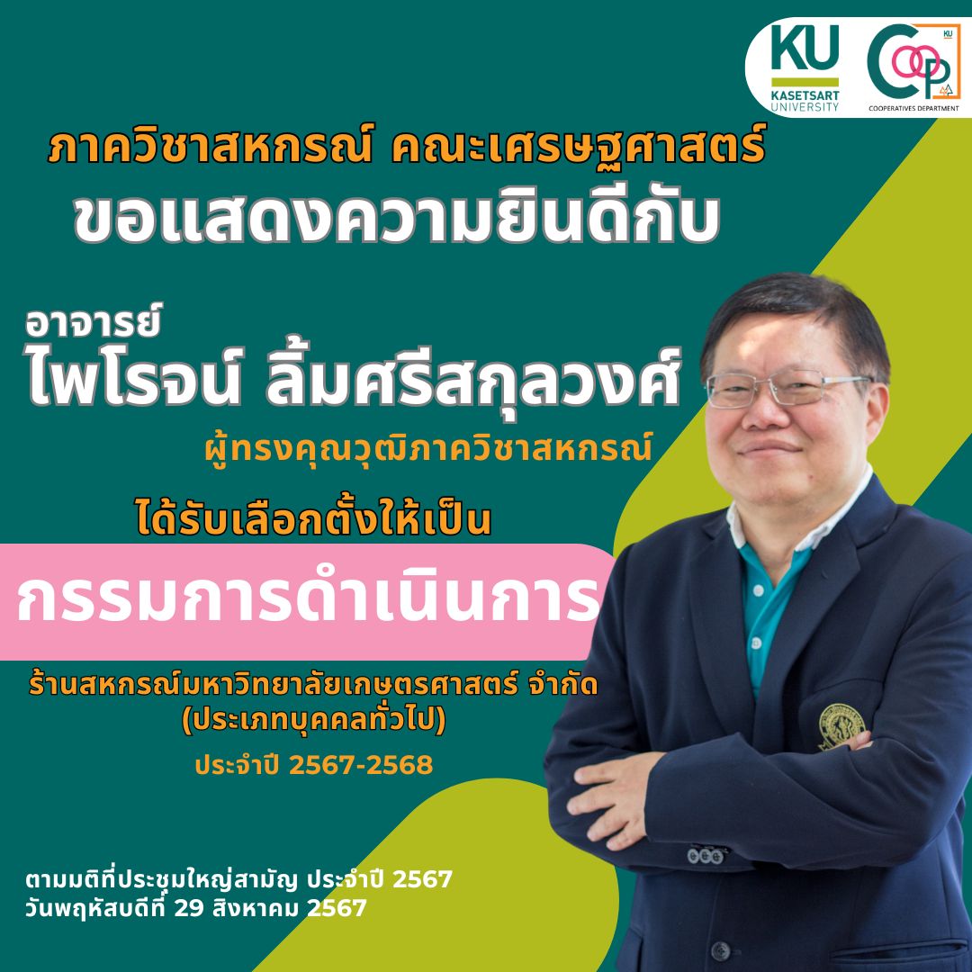 ขอแสดงความยินดีกับคณาจารย์ทุกท่านที่ได้รับ รางวัลผลงานวิจัยตีพิมพ์ระดับนานาชาติ ปี 2565 และ รางวัลผลงานวิจัยที่สร้างผลกระทบ ปี 2567 ของมหาวิทยาลัยเกษตรศาสตร์
