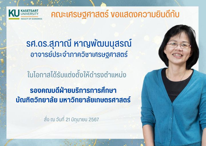 คณะเศรษฐศาสตร์ขอแสดงความยินดีกับ รศ.ดร.สุภาณี หาญพัฒนานุสรณ์