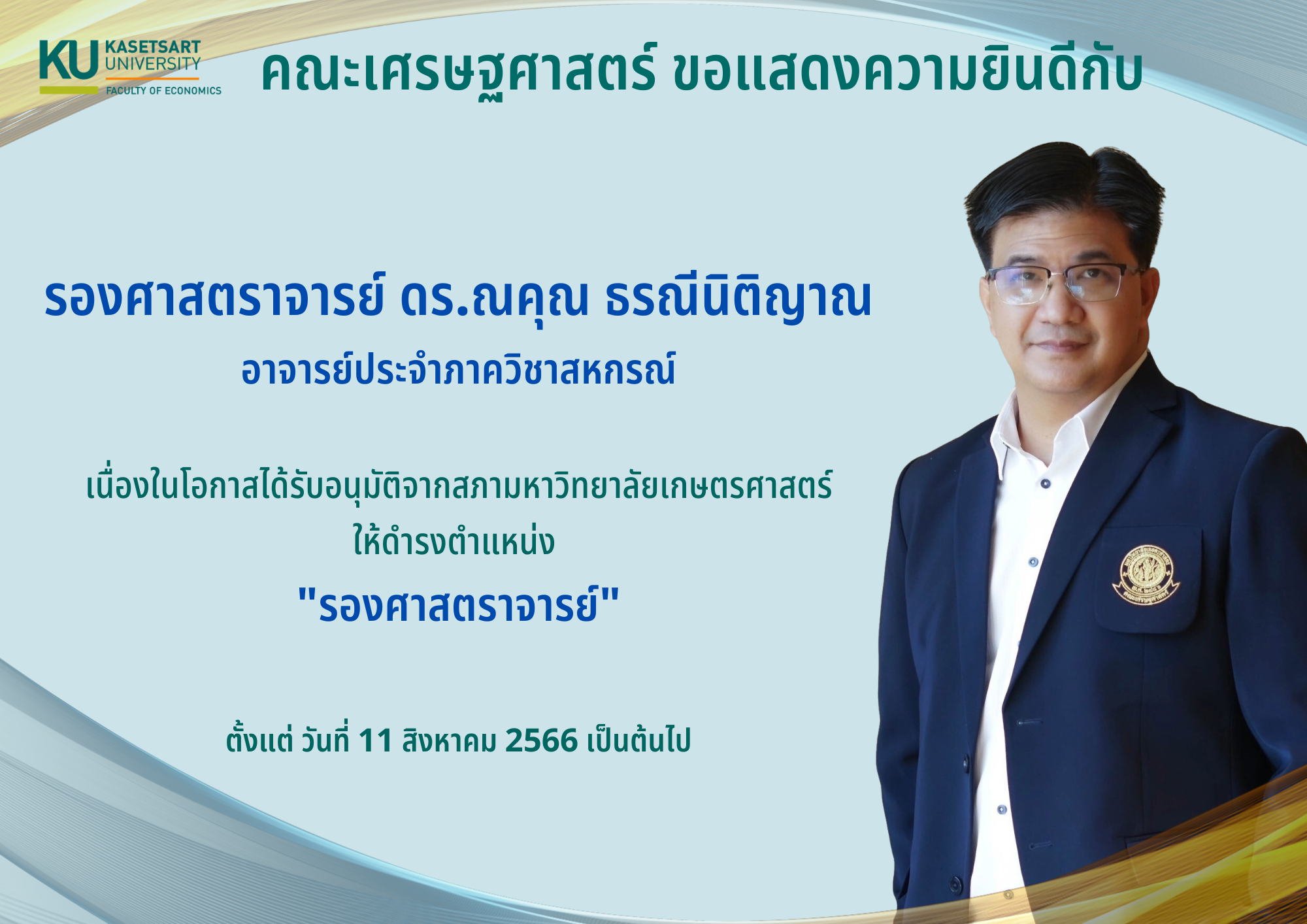 ขอแสดงความยินดีกับ รศ.ดร.ณคุณ ธรณีนิติญาณ หัวหน้าภาควิชาสหกรณ์