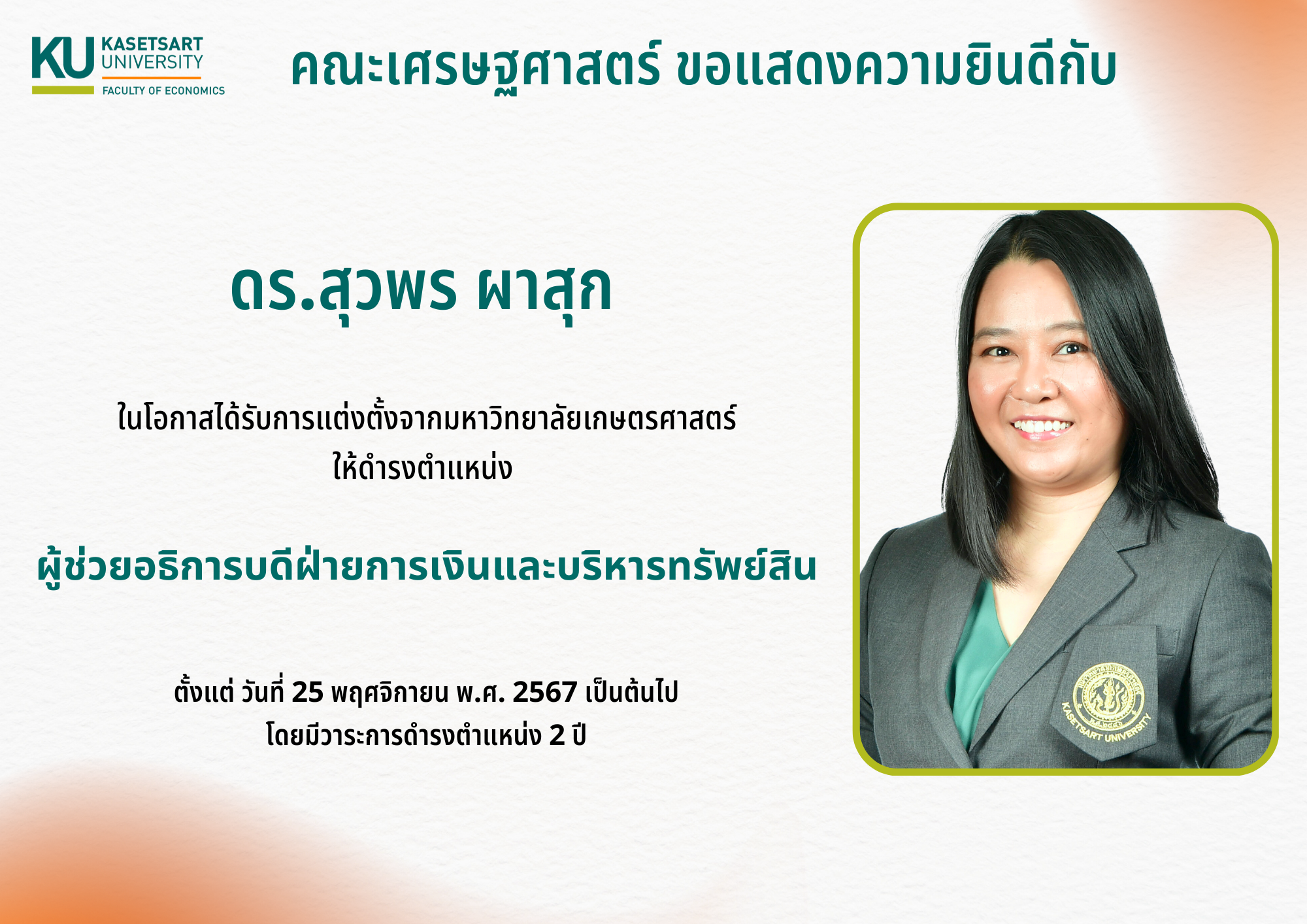 คณะเศรษฐศาสตร์ ขอแสดงความยินดี